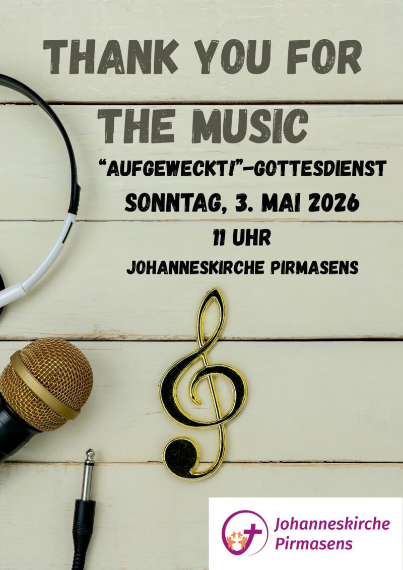Unter dem Motto „Thank you for the music“ feiern wir am Sonntag einen klangvollen, kreativen Gottesdienst. Natürlich ist unser Musikteam mit dabei und das „Aufgeweckt!“-Team wird wie immer mit am Start sein. Lasst euch überraschen, was wir uns alles überlegt haben! Wir feiern den „Aufgeweckt!“-Gottesdienst am Sonntag, 3. Mai, um 11 Uhr in der Johanneskirche. …